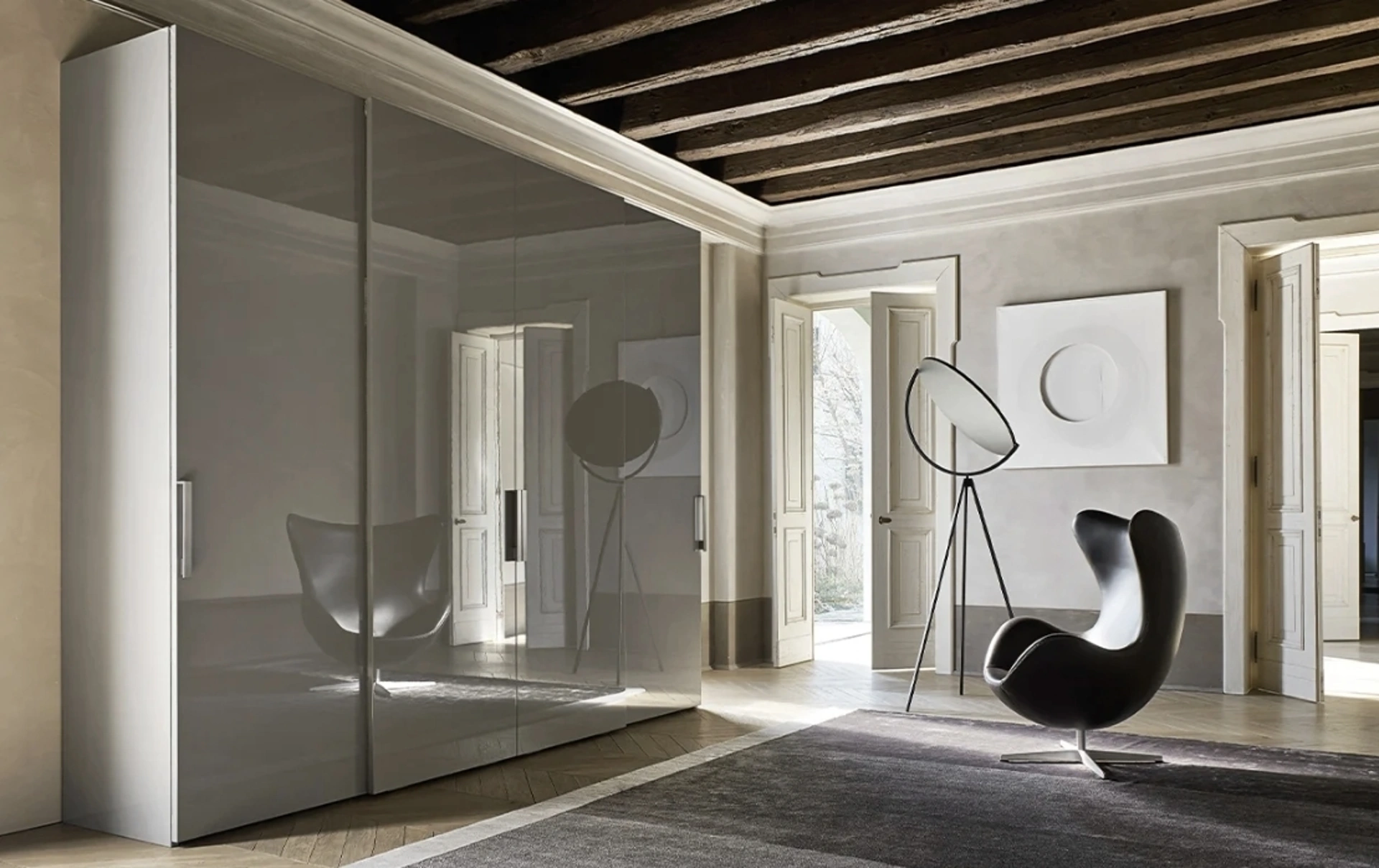 Eccoti l'armadio Anta Liscia Maniglia Mia in laccato lucido di Sangiacomo! Una ricca gamma di armadi a muro con ante scorrevoli.