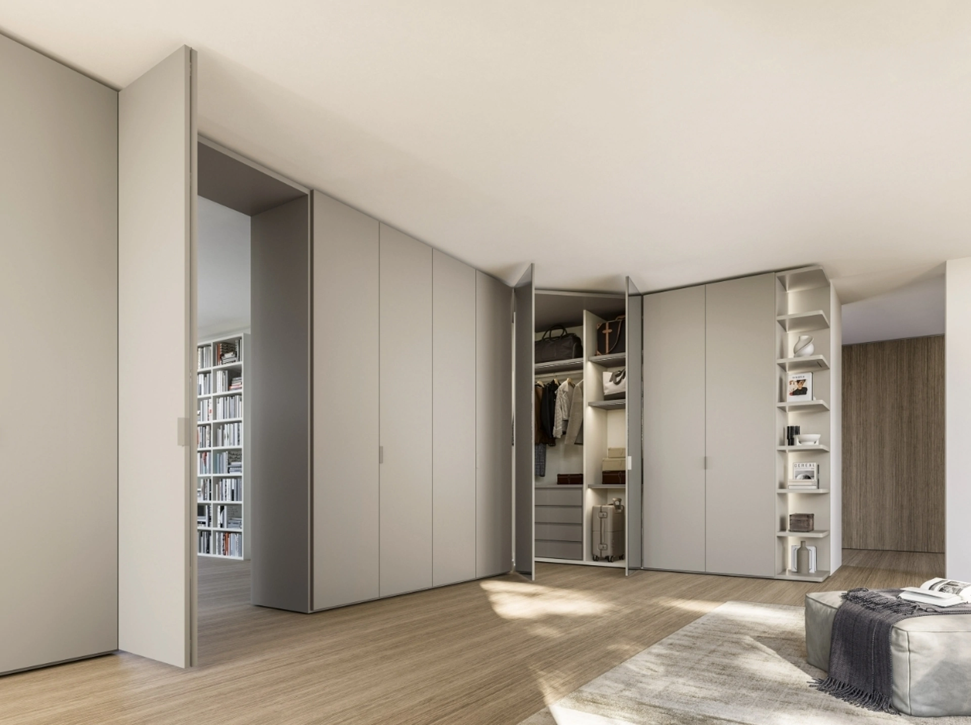 Cerchi un armadio in laccato opaco? Clicca e scopri armadi ad angolo con ante battenti di Sangiacomo.