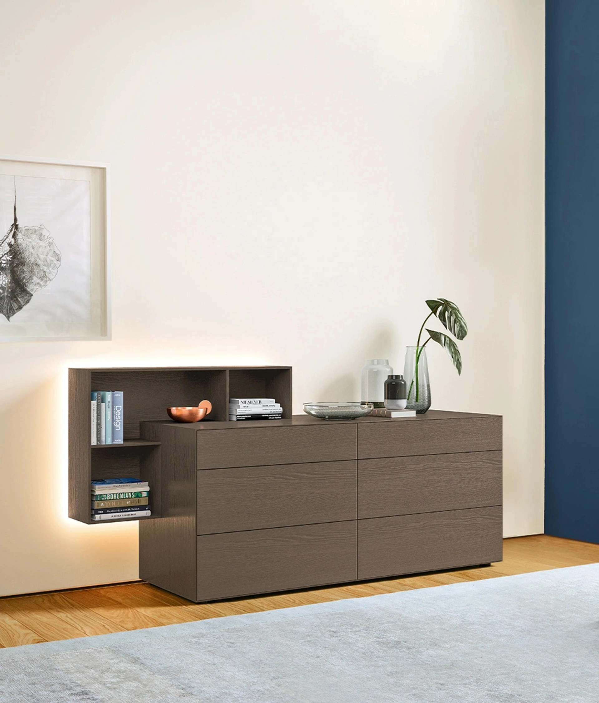 Un ricco catalogo di mobili con cassetti Sangiacomo: i comodini design in legno, come Domino Componibile Comò, sono tra le soluzioni più esclusive.