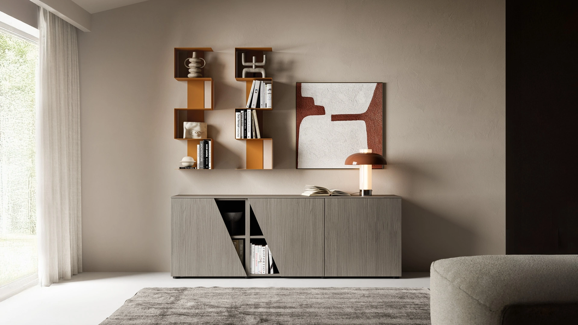 Arreda un living operativo e pratico con questa madia Pratico L1836 H2000 di SantaLucia: scopri le più originali Madie in melaminico.