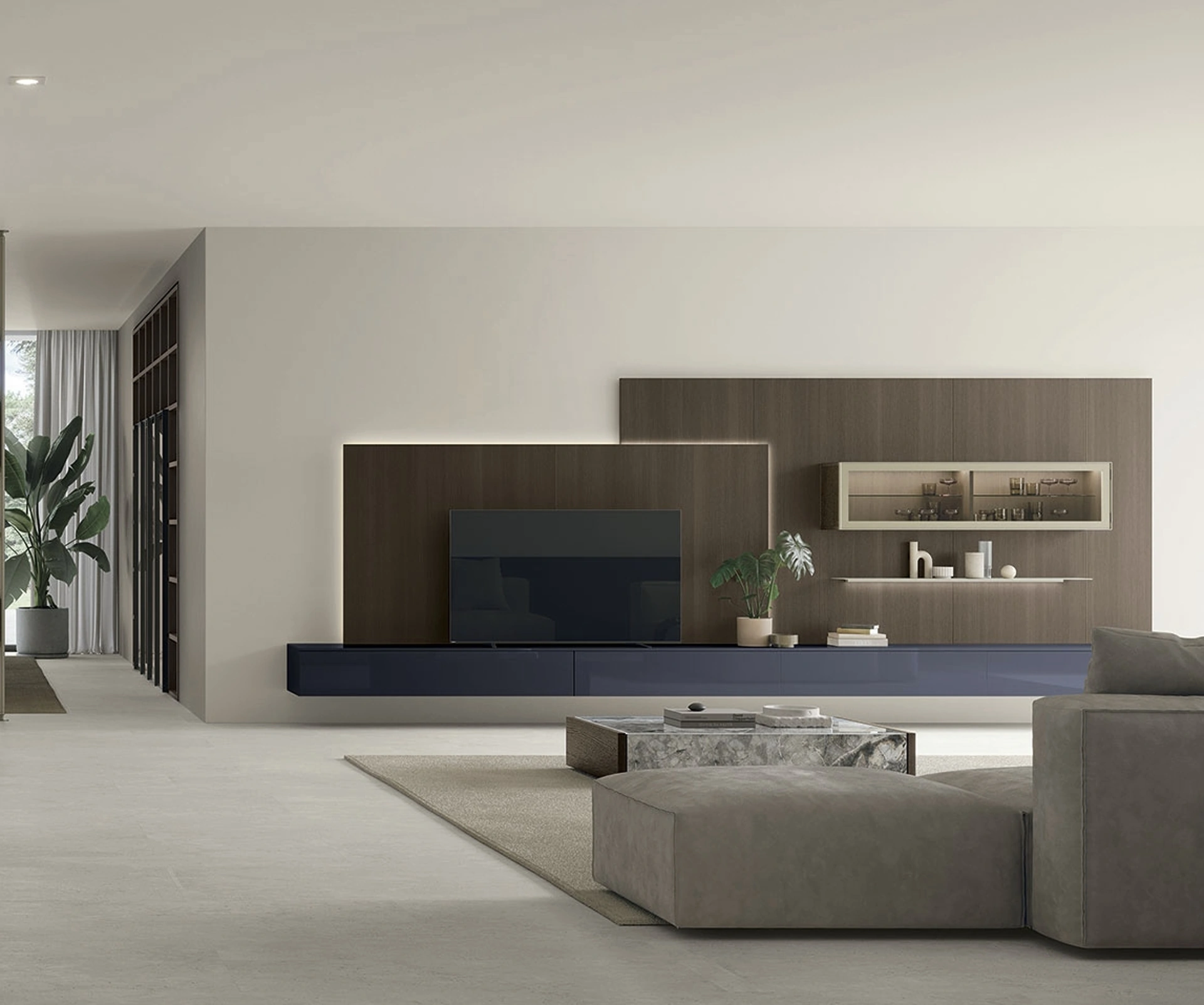 Vuoi progettare un living operativo e pratico? Ecco a te la parete attrezzata Atlante UNIT AT145 Tomasella dalle forme decise moderne.