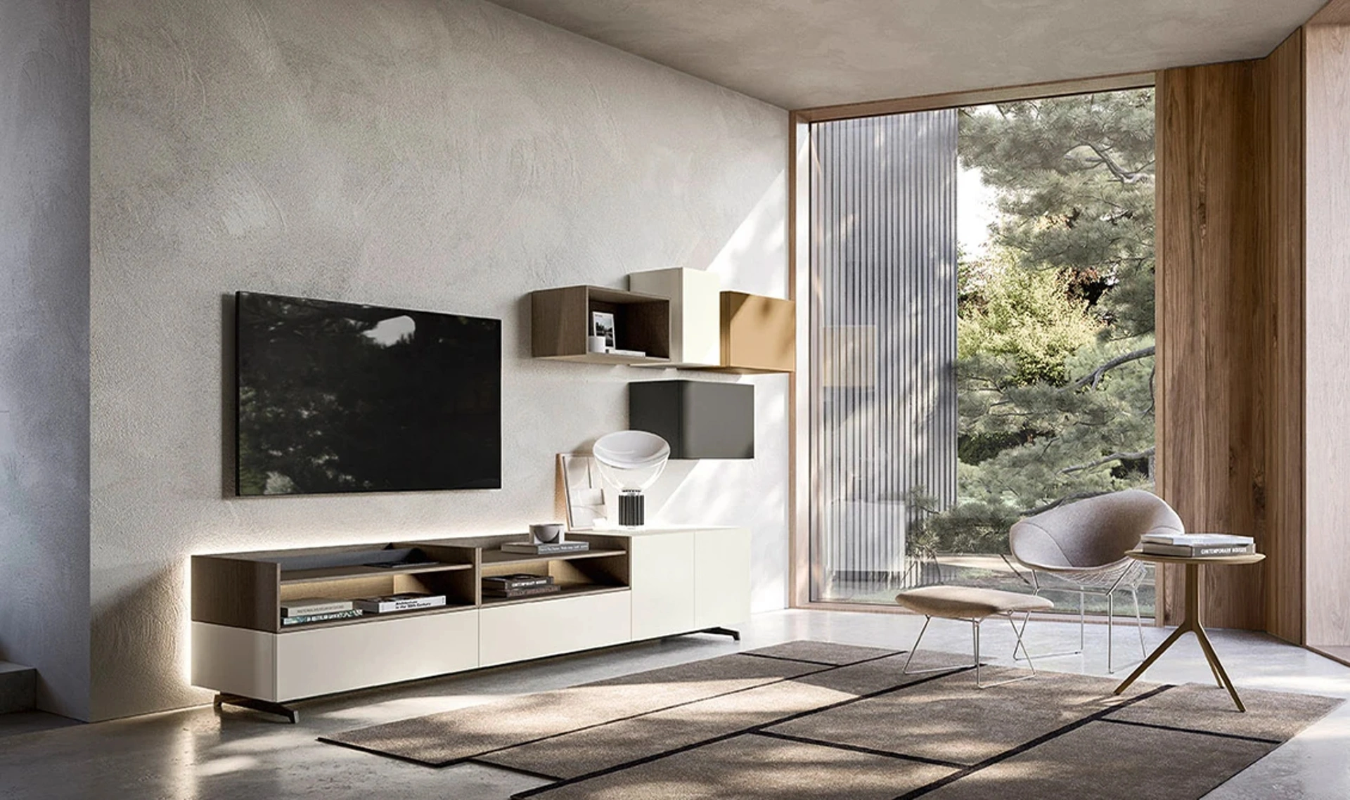 Vuoi allestire un soggiorno dinamico e operativo? Ti presentiamo la parete attrezzata Lampo 033 Sangiacomo dalle linee decise moderne.