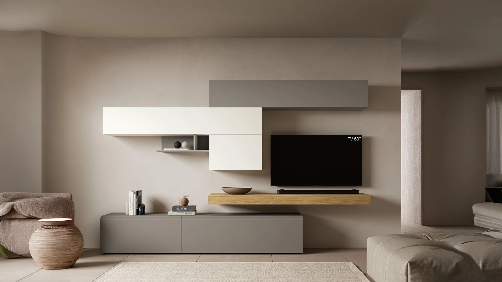 Clicca e ottieni informazioni sulla parete attrezzata Pratico PTG413 del marchio SantaLucia: è la soluzione dalle linee moderne ideale per te.