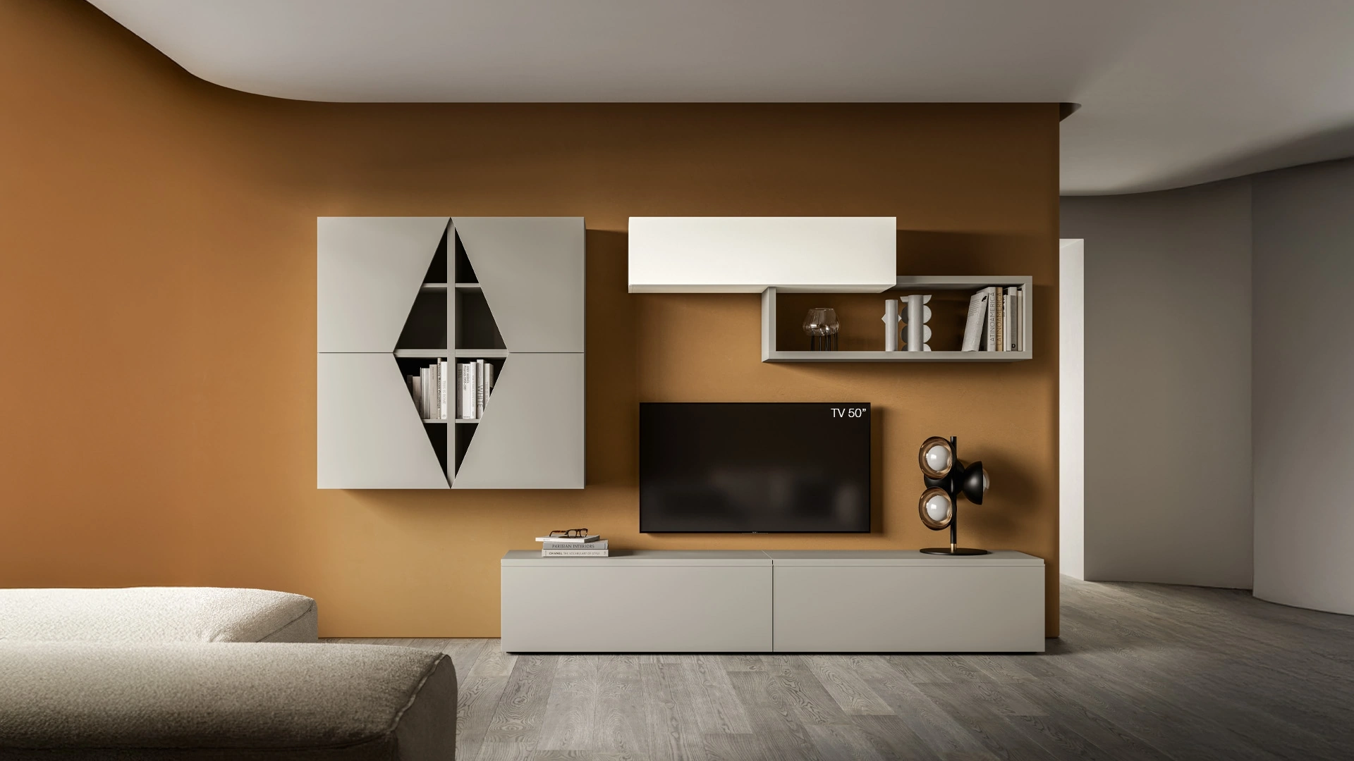 Clicca e scopri di più sulla parete attrezzata Pratico PTG422 della firma SantaLucia: è la soluzione dalle linee moderne ideale per te.