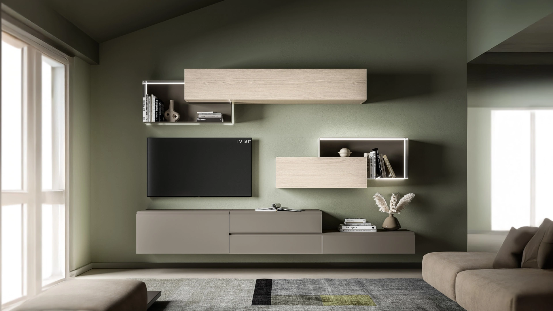Se vuoi completare un living pratico e dinamico dalle linee moderne, ti offriamo la parete attrezzata Pratico PTG433 SantaLucia.