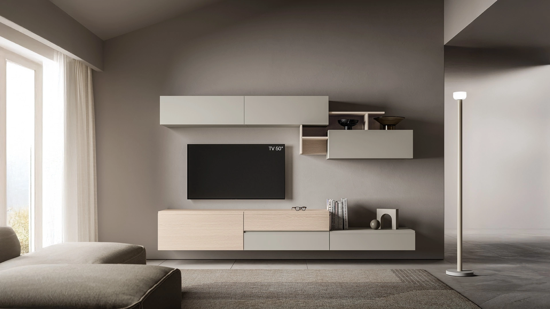 Vuoi allestire un soggiorno operativo e pratico? Ecco a te la parete attrezzata Pratico PTG446 SantaLucia dalle linee decise moderne.