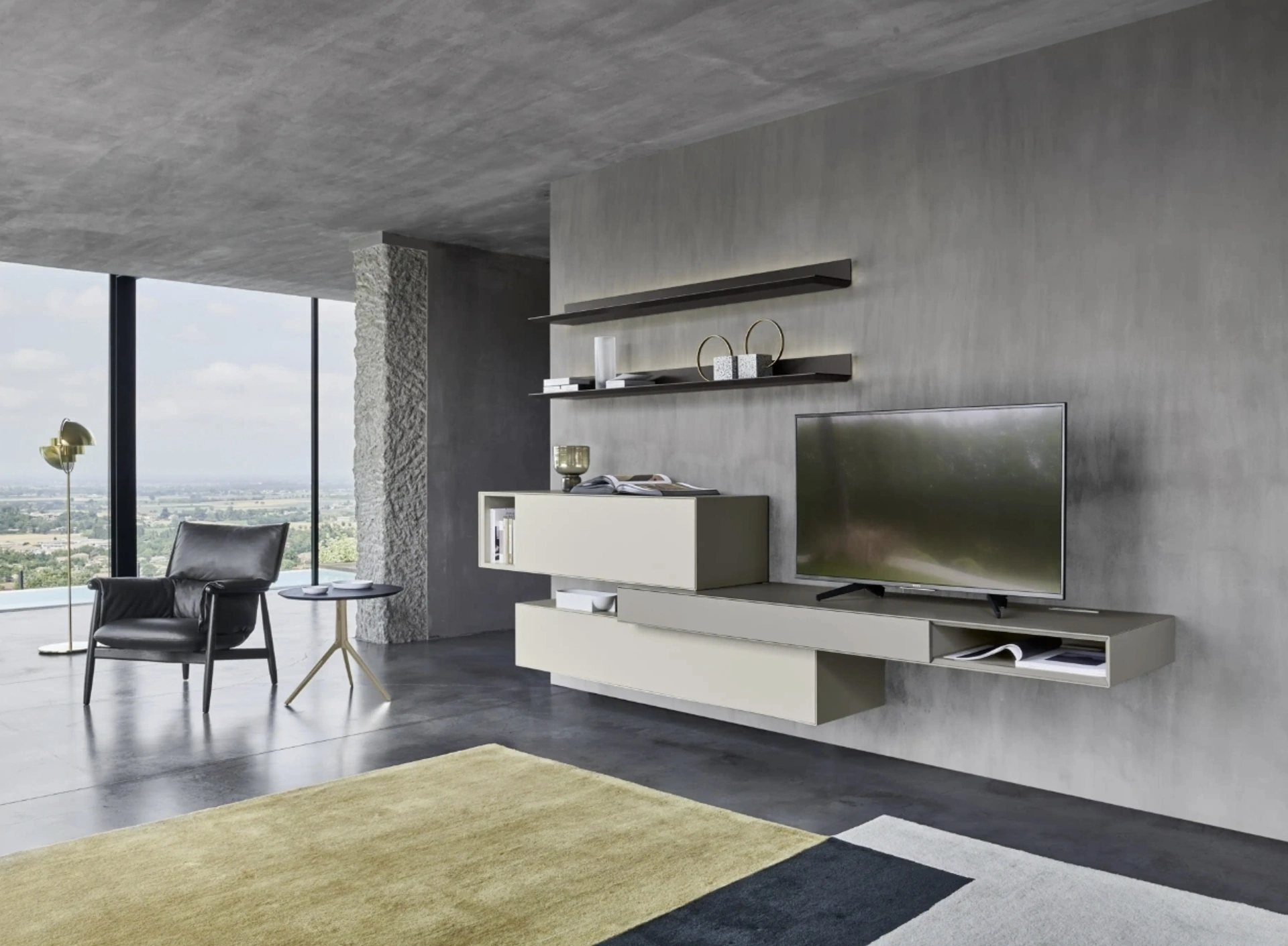 Pareti attrezzate e mobili giorno Sangiacomo: clicca e scopri il modello Domino 04 e potrai impreziosire stanze moderne di ogni tipo.