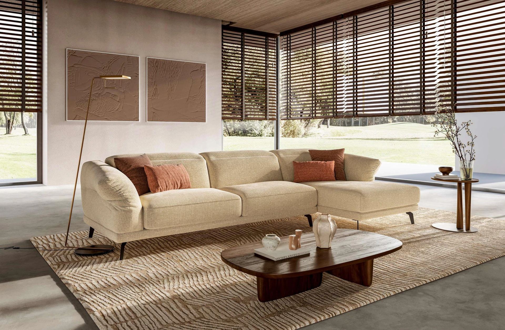 Divano con penisola Sky di Le Comfort: ricrea uno spazio intimo e confortevole in spazi moderni di grande personalità. La linea di divani dell'azienda in questione propone svariate possibilità originali per decorare il soggiorno all'insegna di funzionalità, comfort e stile. Se desideri divani e poltrone con penisola come il modello nell'immagine, contraddistinto dai volumi che invitano a passare i tuoi momenti di relax. I nostri Salotti sono progettati per essere abbinati a elementi accessori di ogni genere, come tavolini, lampade e piantane o in combinazione con ulteriori divani in tessuto.