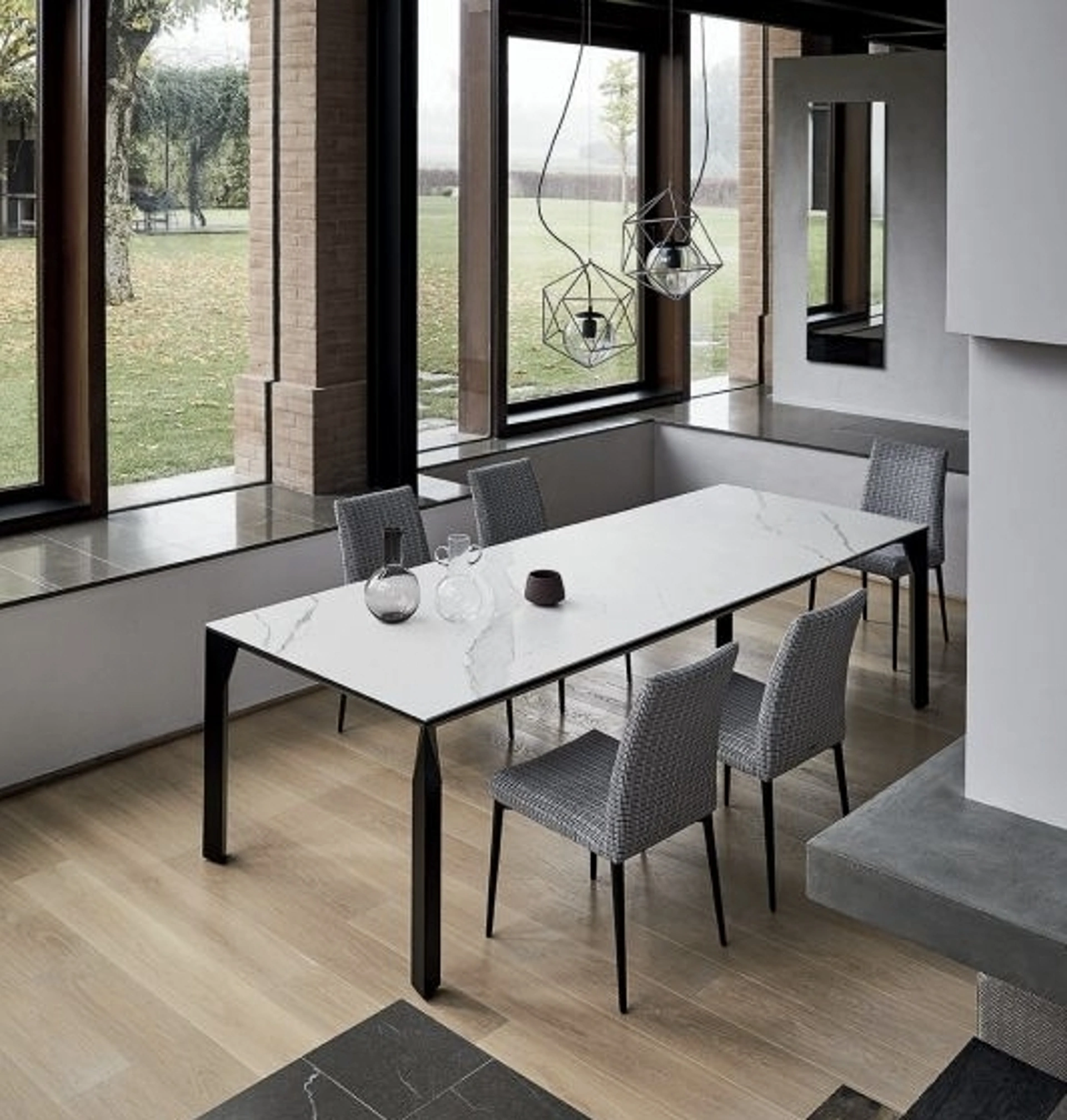 Se sei alla ricerca di tavoli moderni da pranzo, scopri i modelli fissi di Bontempi: clicca e scopri il modello Mirage in gres.