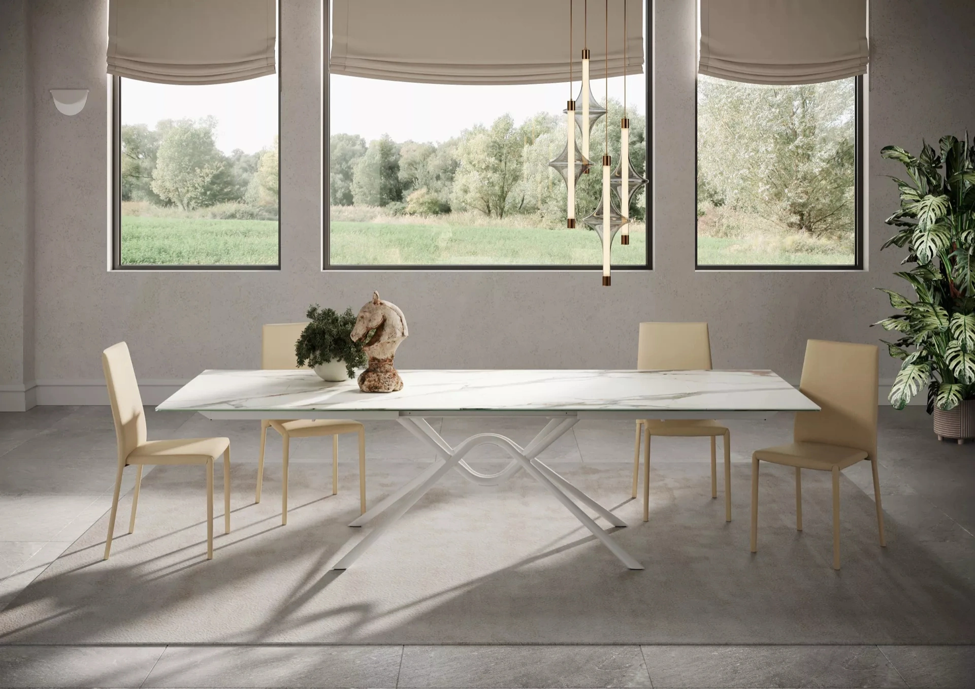 Clicca e scopri una ricca gamma di Tavoli moderni allungabili da pranzo! Il modello Hunter di Bontempi ti sta aspettando.